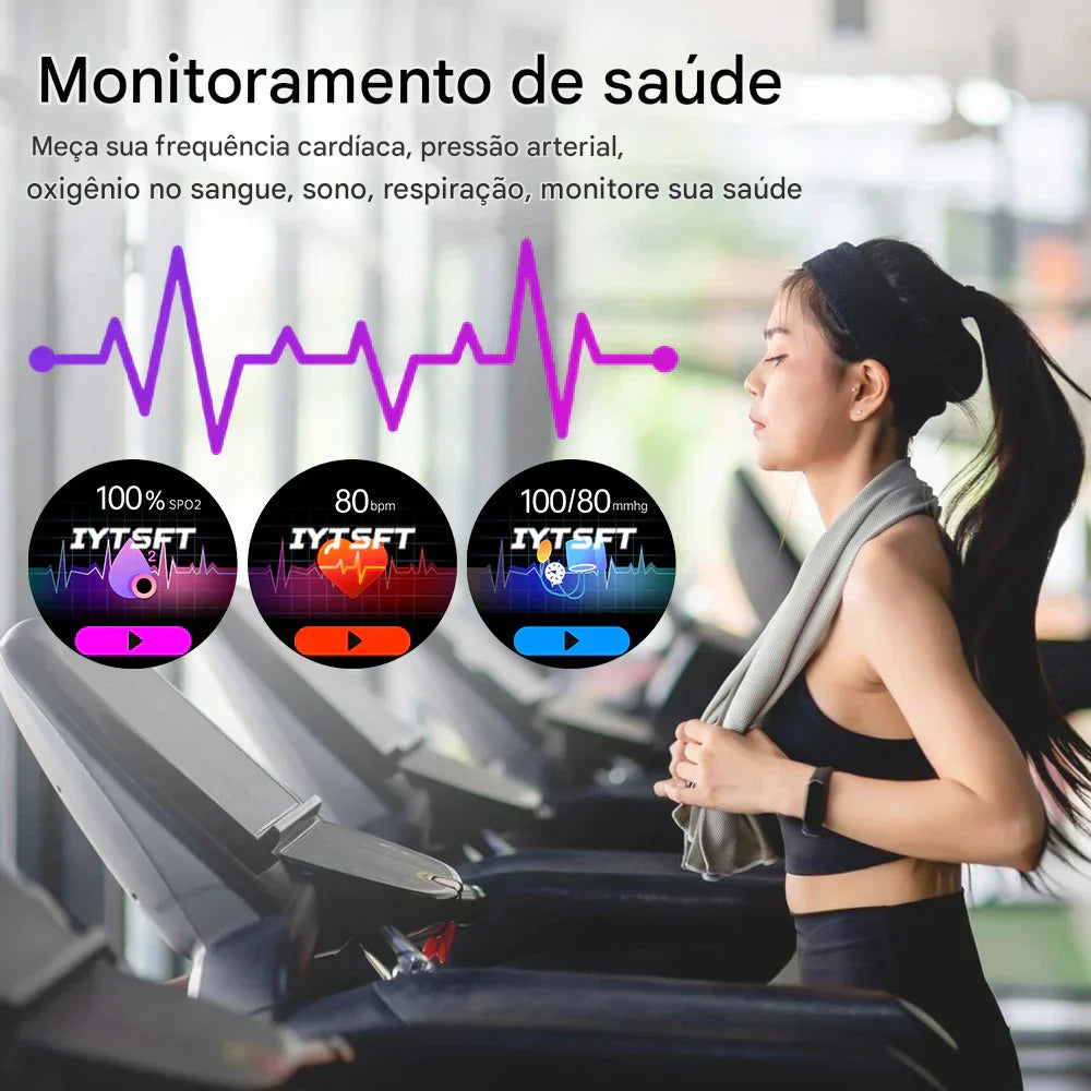 💓 Monitoramento de Saúde: Acompanhe frequência cardíaca, pressão arterial, oxigênio no sangue e qualidade do sono.